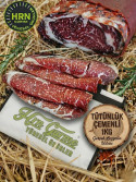 HRN GURME Tütüklük Pastırma, Kayseri'nin geleneksel pastırma üretim teknikleriyle hazırlanmış, et severlerin vazgeçilmezi olan bir lezzettir. Özenle seçilen etler, zengin aroması ve yumuşak dokusuyla kendine has bir tat elde eder. Kayseri'nin doğal ikliminde olgunlaşan bu özel pastırma, her diliminde baharatların yoğun lezzetini barındırır. HRN GURME Tütüklük Pastırma, özellikle kahvaltılarda, sandviçlerde ve etli yemeklerde mükemmel bir seçenek sunar.